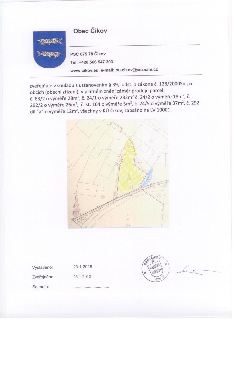 Úvod > Prodeje a pronájmy > Záměr obce o prodeji parcel